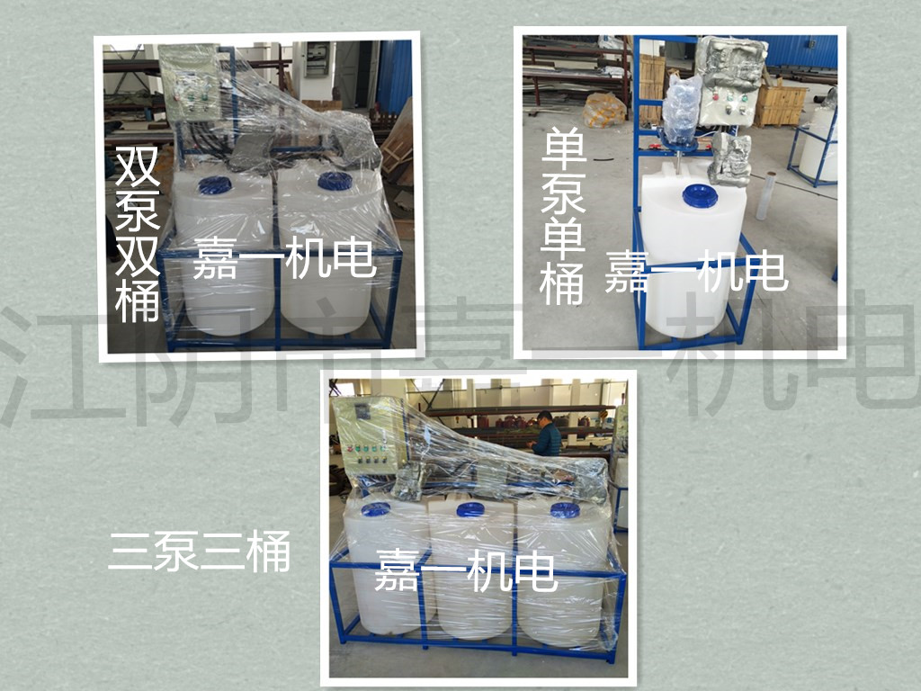 嘉一生產(chǎn)的全自動(dòng)加藥裝置根據(jù)工藝流程向各種系統(tǒng)中注入化學(xué)藥液的成套裝置,該裝置按照使用場合可分為三大類。