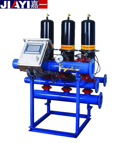 盤式過濾單元由增強聚酰胺塑料成形制造,防腐耐磨,可承受工作壓力1MPa,過濾盤材質為聚丙烯塑料EPDM密,進出水及排水管路有碳鋼聚酯涂襯、工程塑料和不銹鋼三種;閥門有塑料閥或金屬閥;系統配套提供多功能控制盤。