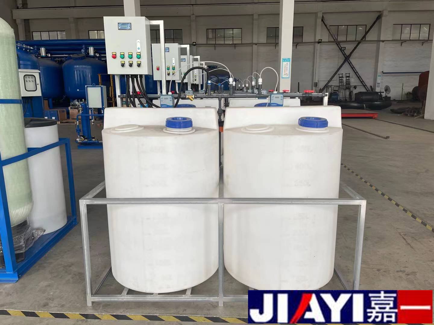 全自動加藥裝置采用時間程序控制,此控制方式無需儀表的支持,首先根據系統的運轉需要設定自動加藥的周期、加藥量、加藥時間和加藥頻率。在以后的系統運轉過程中,到加藥周期,計量泵自動打開加藥,加到規定的時間計量泵關閉;到排污周期,計量泵停止加藥,排到規定的時間后,計量泵繼續開啟,補充排污損失掉的藥劑,把系統的含藥量維持在正常的水平、加到規定的時間計量泵關閉。