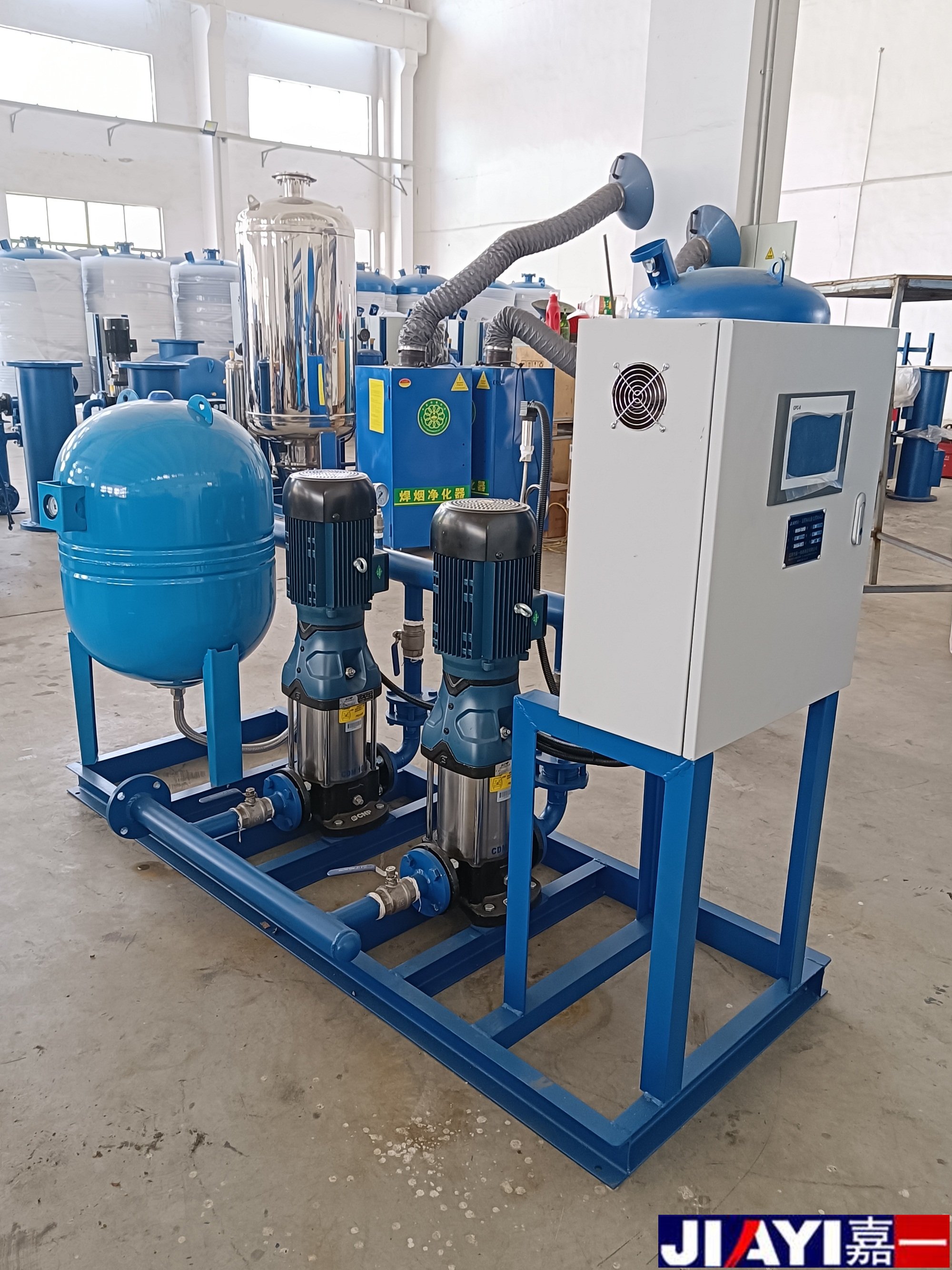 電子水處理器5套,分集水器2臺,物化一體水處理器2臺,定壓補水機組1套,變頻供水機組1套,全自動軟水器1套,凝結水回收裝置1套,膨脹罐1臺
